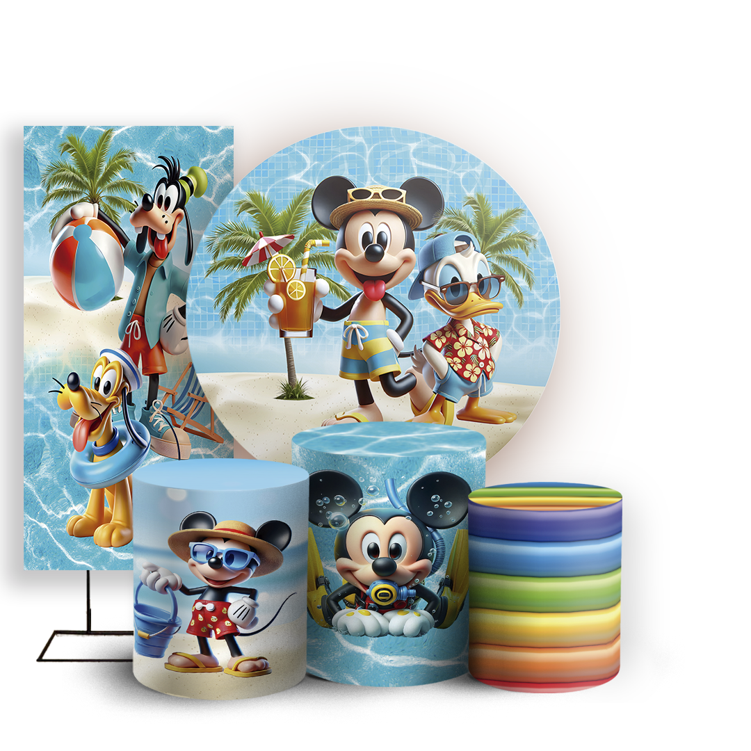 KIT Redondo Trio e Faixa - Mickey Pool Party - Sublimado 3D