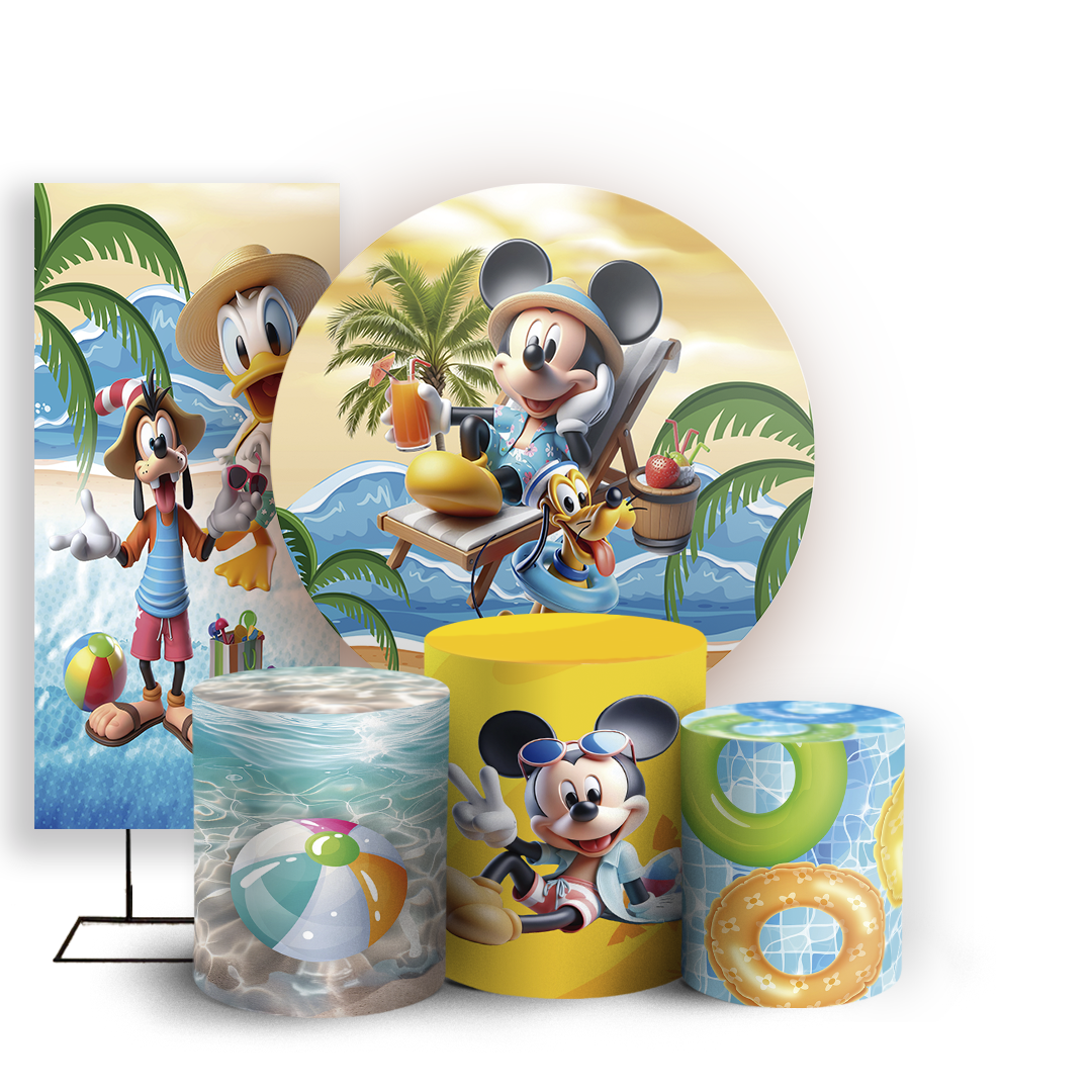 KIT Redondo Trio e Faixa - Mickey Pool Party - Sublimado 3D