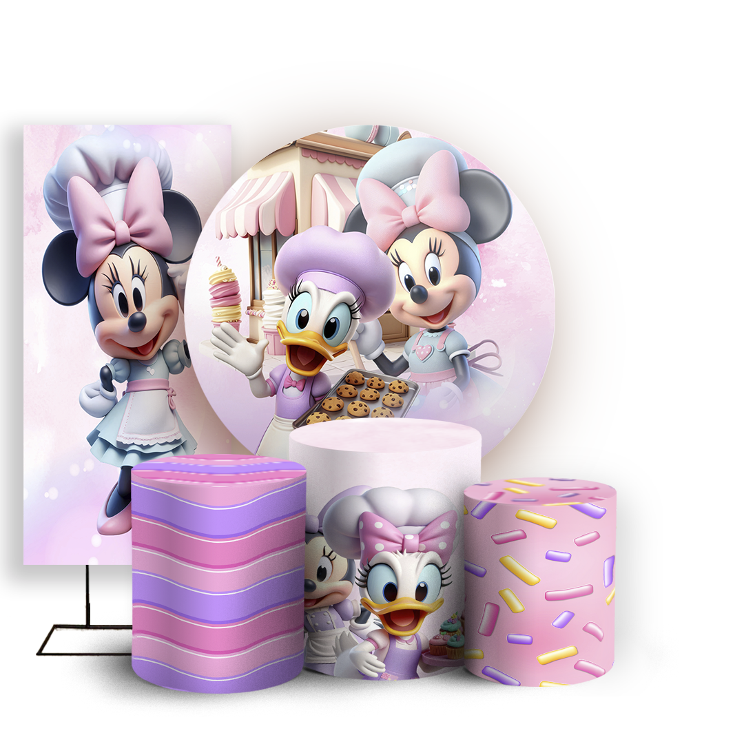 KIT Redondo Trio e Faixa - Minnie Confeitaria - Sublimado 3D