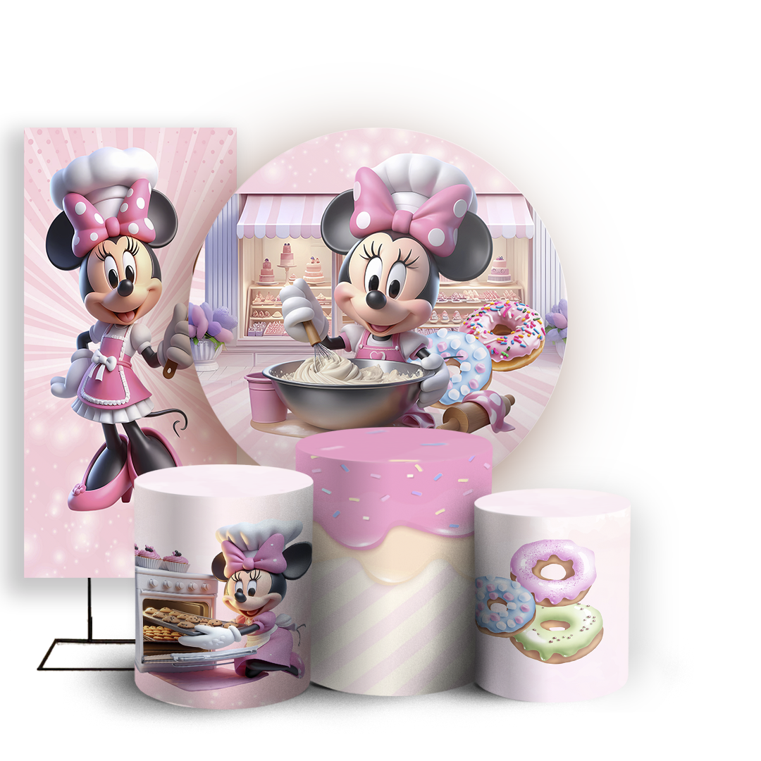 KIT Redondo Trio e Faixa - Minnie Confeiteira - Sublimado 3D