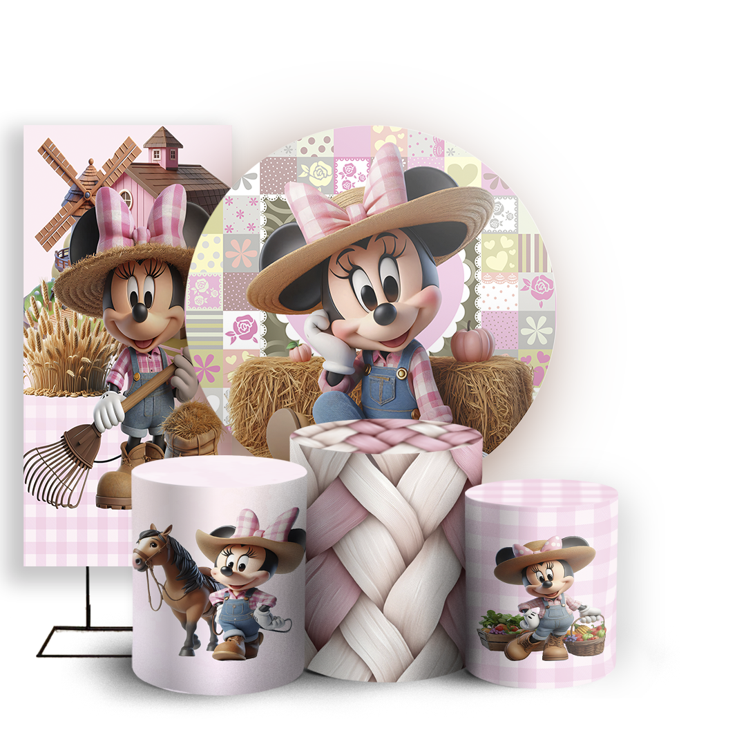 KIT Redondo Trio e Faixa - Minnie Fazendinh - Sublimado 3D
