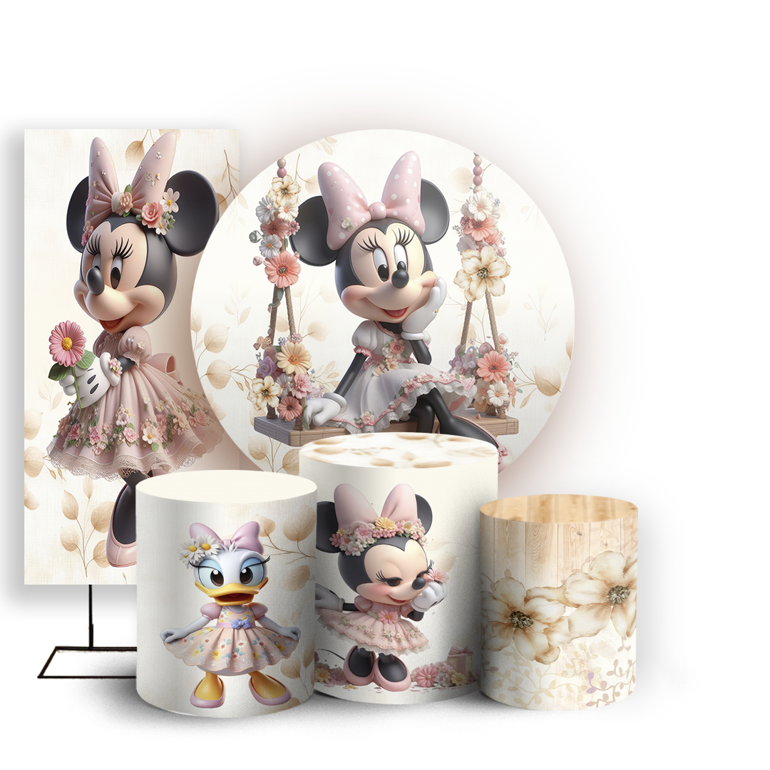 KIT Redondo Trio e Faixa - Minnie Jardim - Sublimado 3D