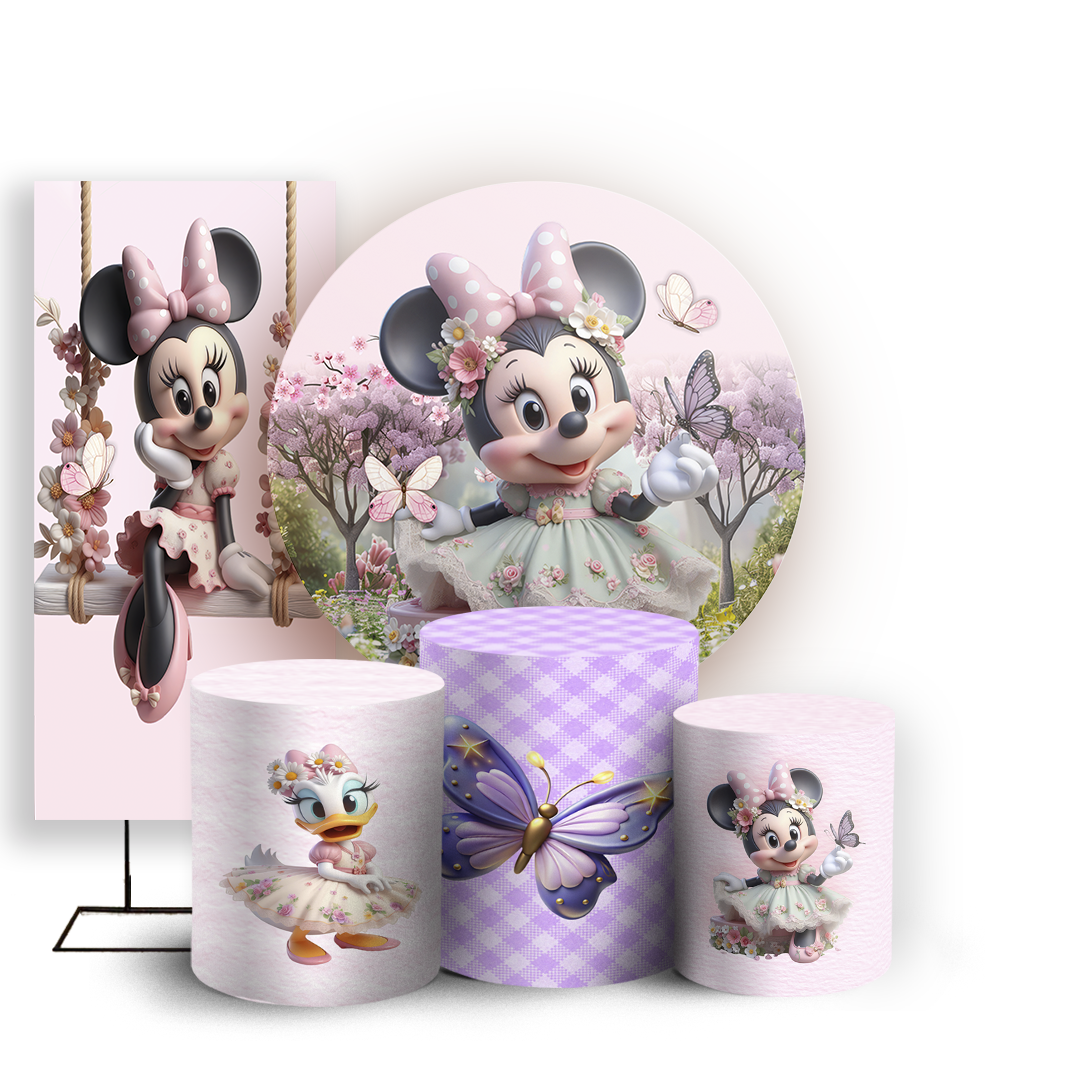 KIT Redondo Trio e Faixa - Minnie Jardim - Sublimado 3D