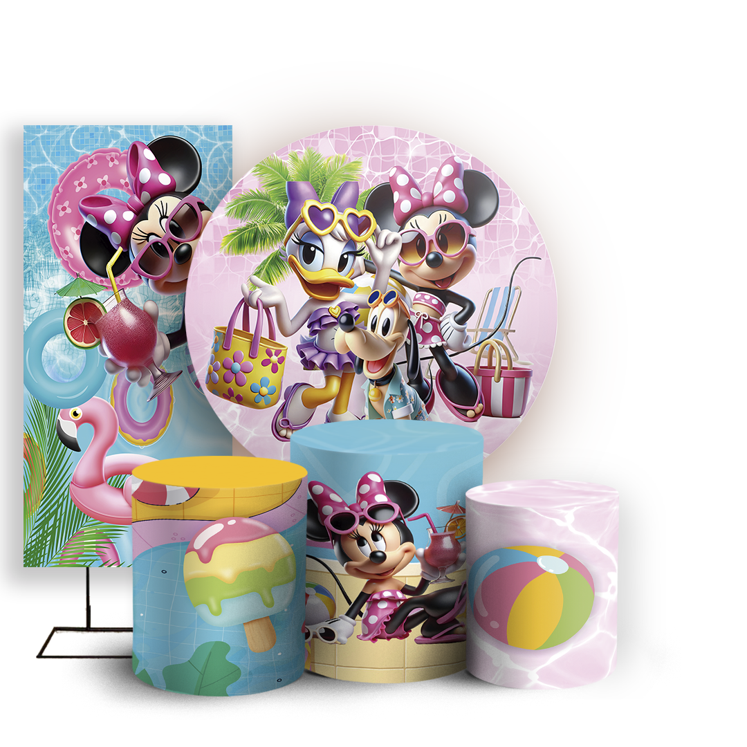 KIT Redondo Trio e Faixa - Minnie Pool Party - Sublimado 3D