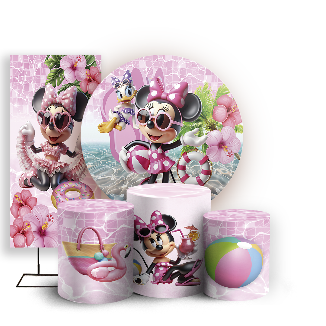 KIT Redondo Trio e Faixa - Minnie Pool Party - Sublimado 3D