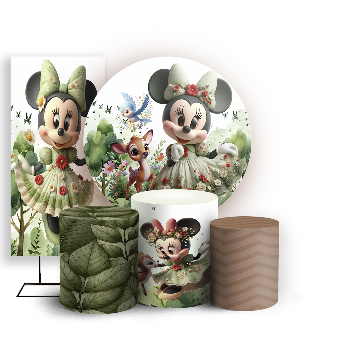 KIT Redondo Trio e Faixa - Minnie Verde - Sublimado 3D
