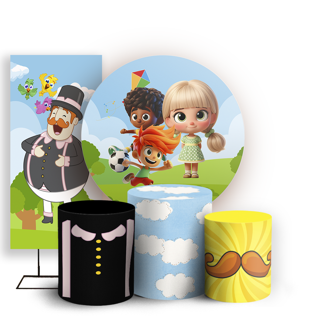 Com o kit Redondo, Trio de capas e Faixa lateral você criar uma decoração criativa para qualquer festa ou evento.