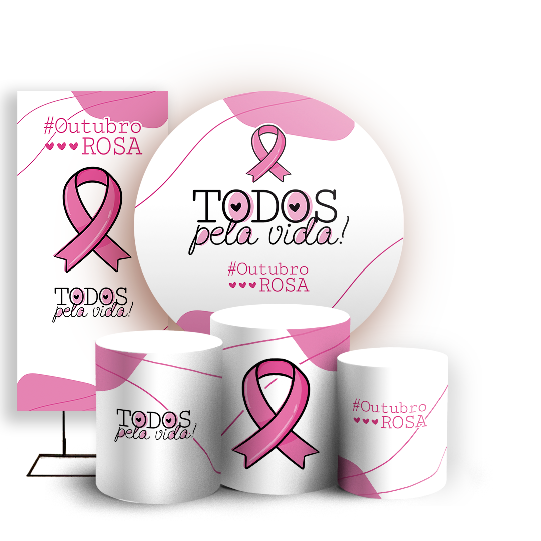 KIT Redondo Trio e Faixa - Outubro Rosa - Sublimado 3D