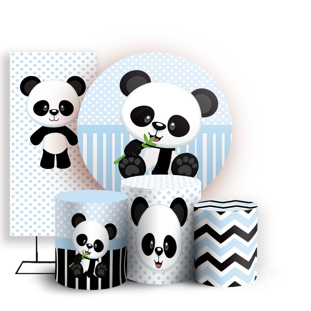 KIT Redondo Trio e Faixa - Panda Azul - Sublimado 3D