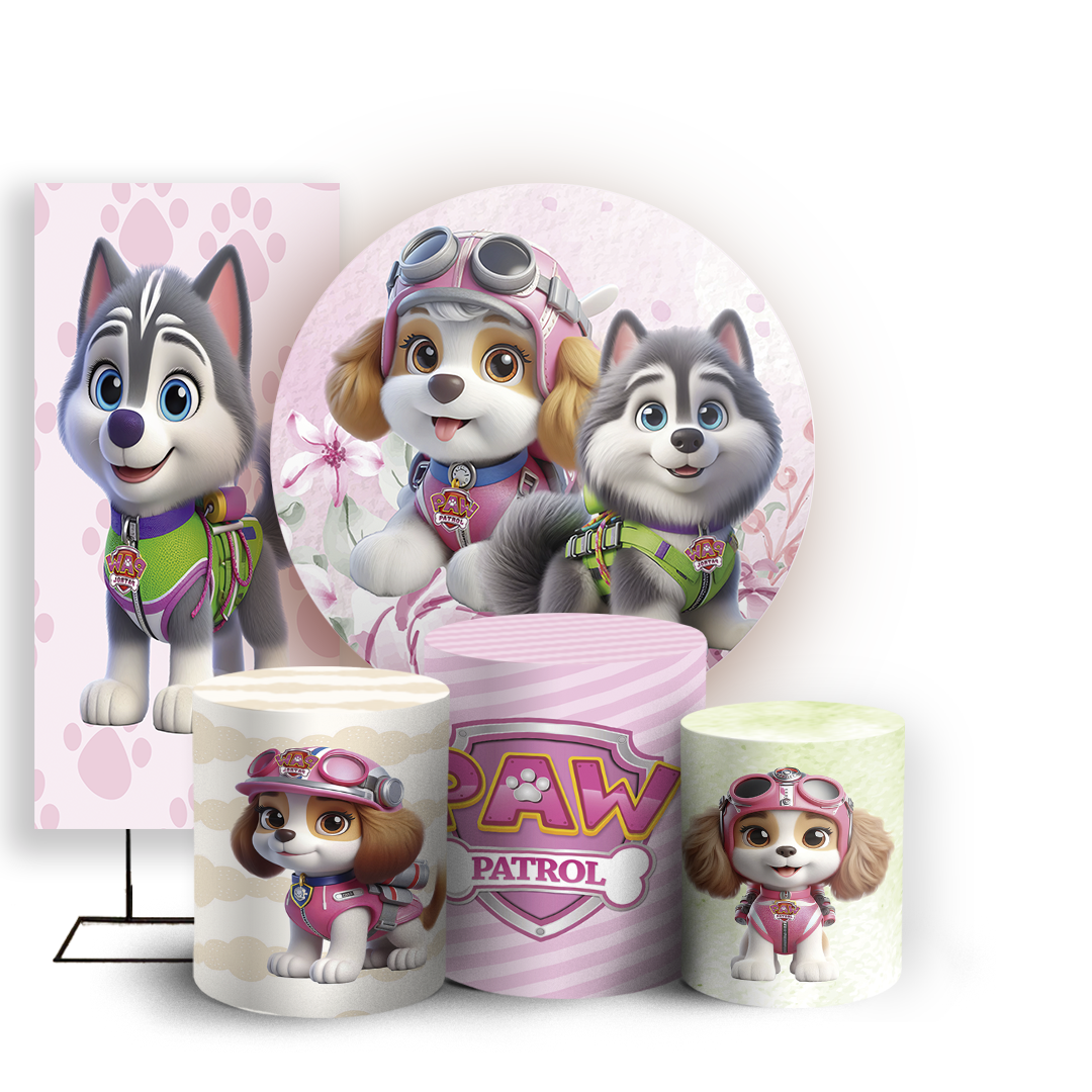 KIT Redondo Trio e Faixa - Patrulha Canina Rosa - Sublimado 3D
