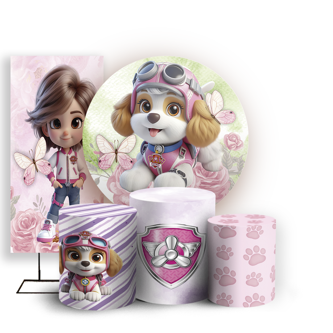 KIT Redondo Trio e Faixa - Patrulha Canina Rosa - Sublimado 3D