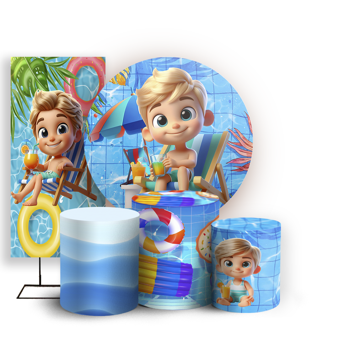 KIT Redondo Trio e Faixa - Pool Party - Sublimado 3D