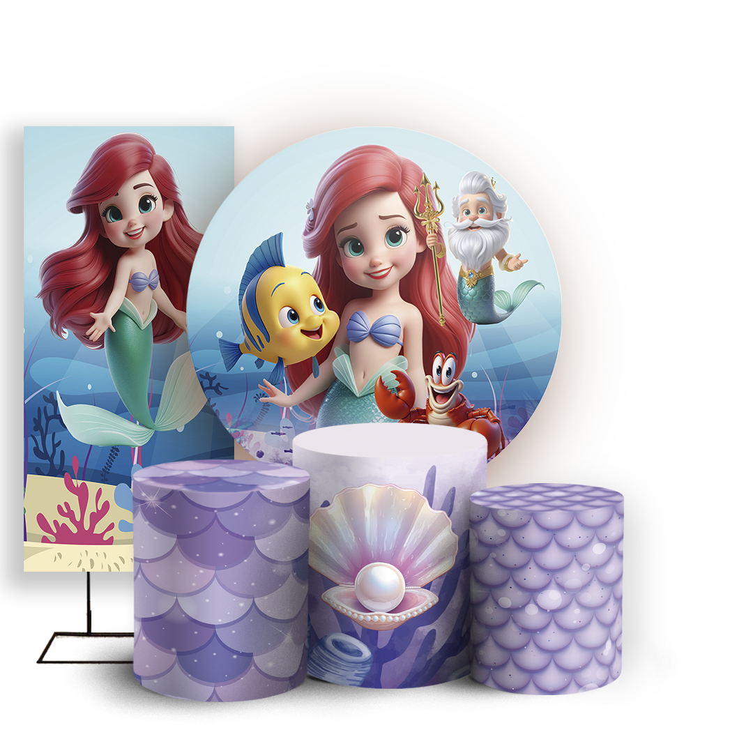 KIT Redondo Trio e Faixa - Princesa Ariel - Sublimado 3D
