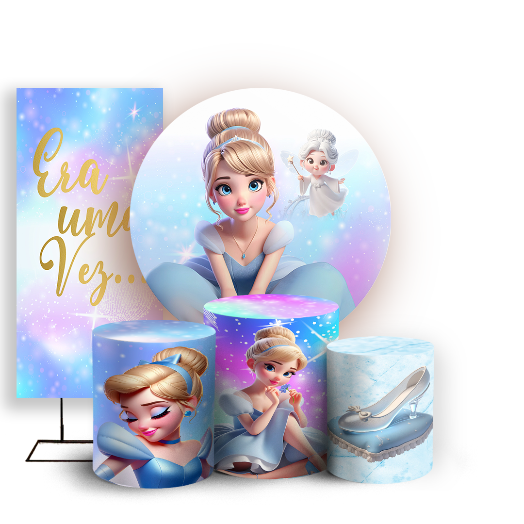 KIT Redondo Trio e Faixa - Princesa Cinderela - Sublimado 3D