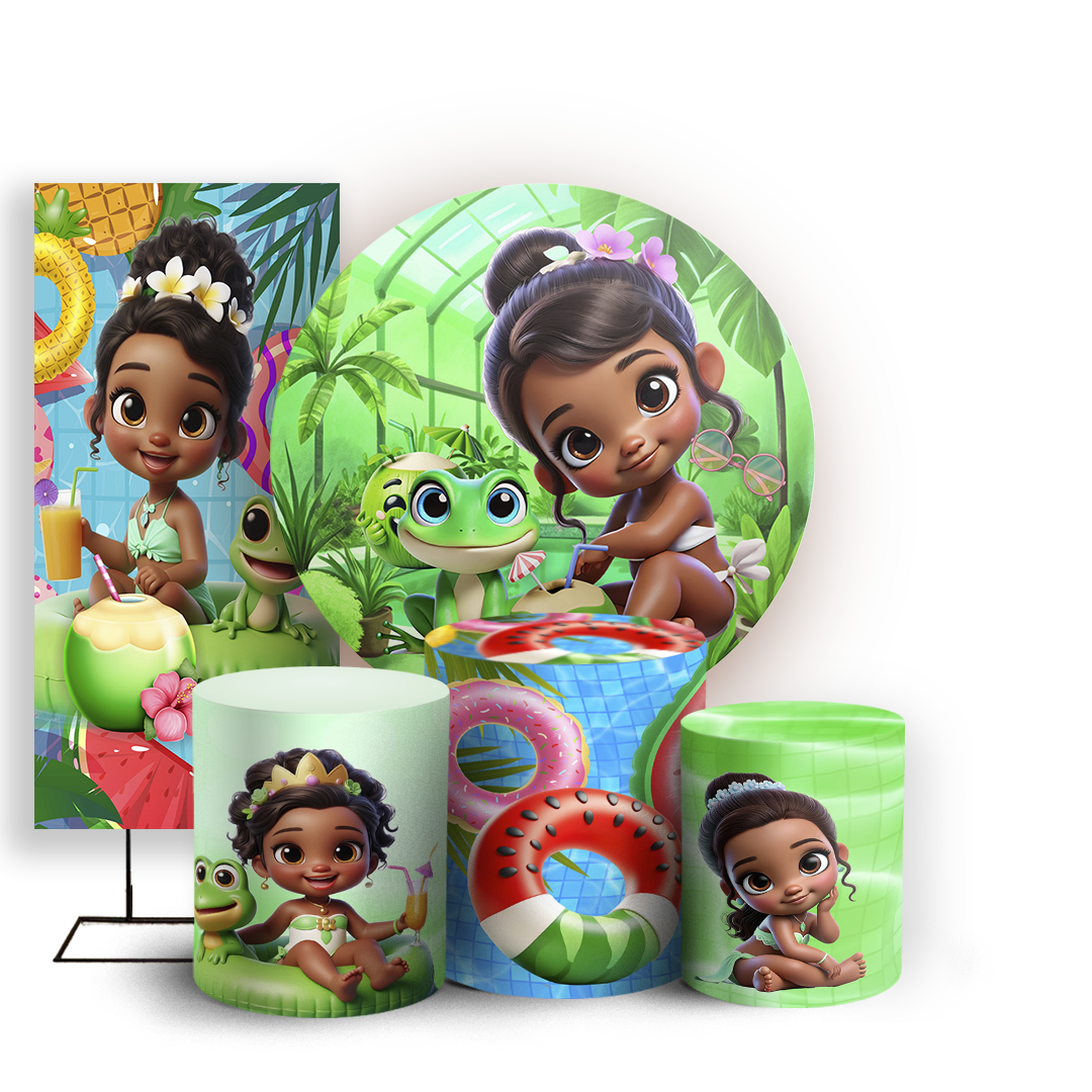 KIT Redondo Trio e Faixa - Princesas Pool Party - Sublimado 3D