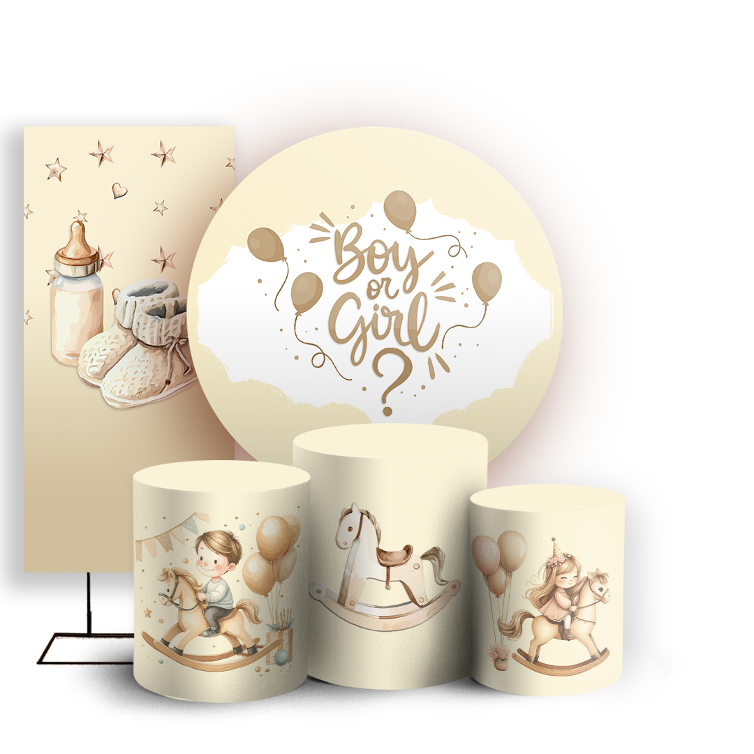 Com o kit Redondo, Trio de capas e Faixa lateral você criar uma decoração criativa para qualquer festa ou evento.