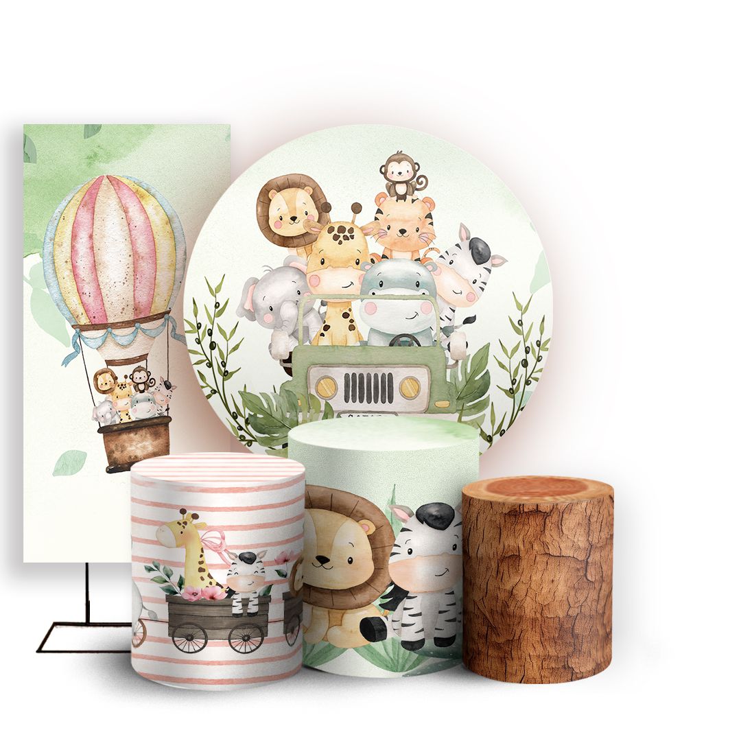 Com o kit Redondo, Trio de capas e Faixa lateral você criar uma decoração criativa para qualquer festa ou evento.