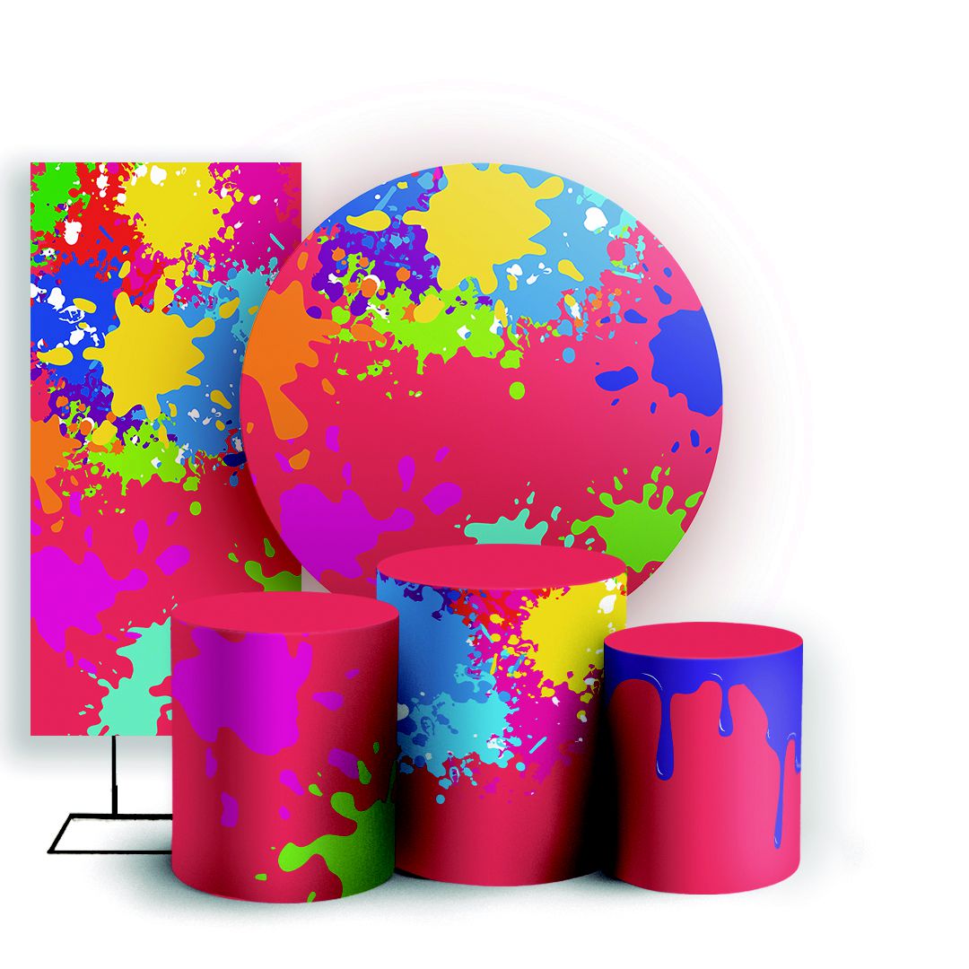 Com o kit Redondo, Trio de capas e Faixa lateral você criar uma decoração criativa para qualquer festa ou evento.