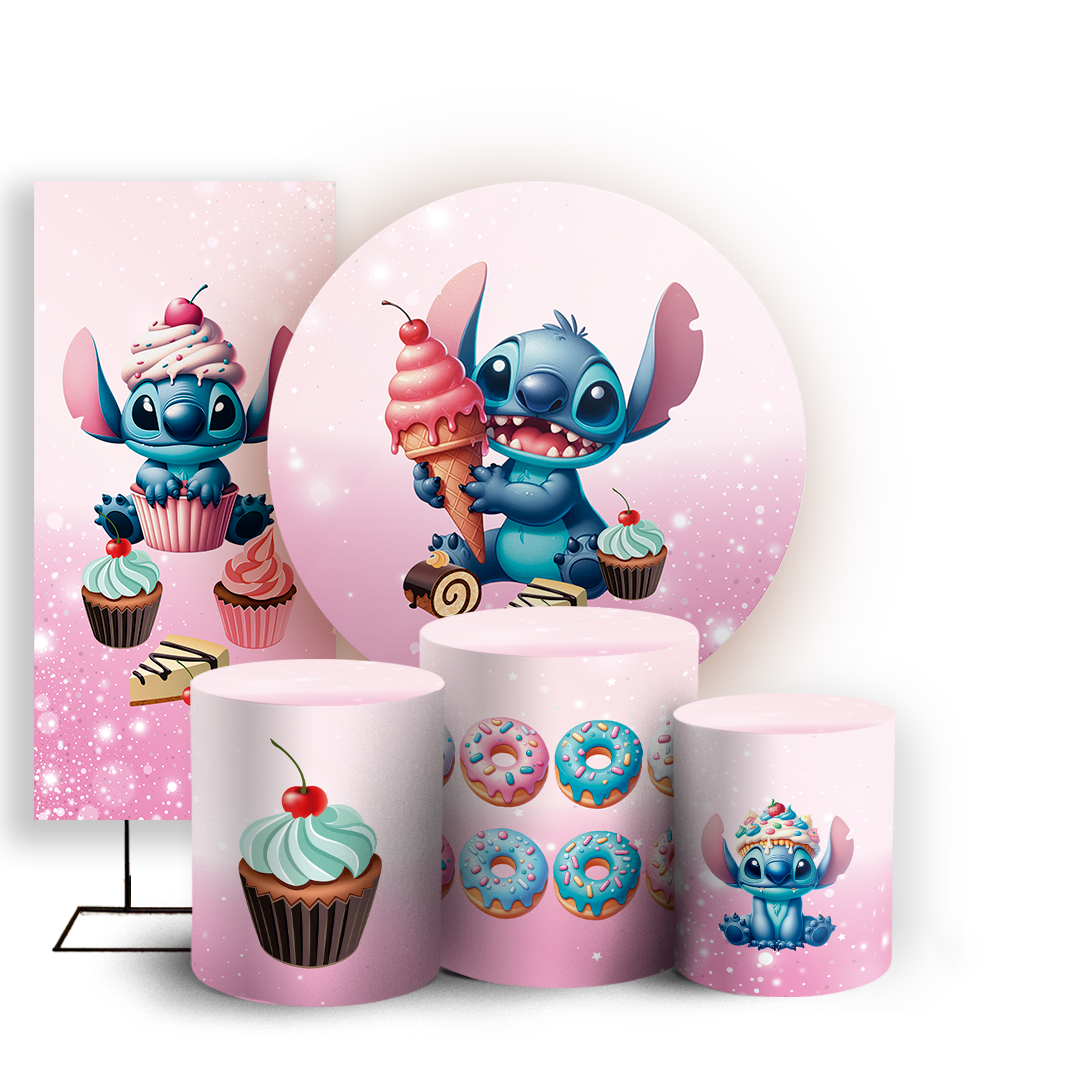 KIT Redondo Trio e Faixa - Stitch Confeitaria - Sublimado 3D