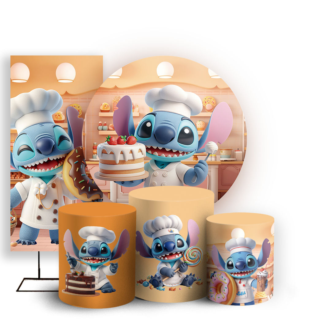 KIT Redondo Trio e Faixa - Stitch Confeitaria - Sublimado 3D