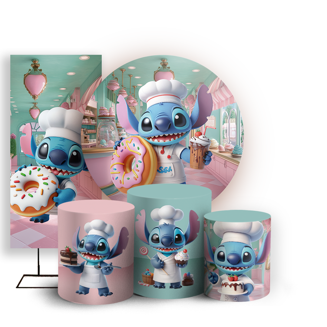 KIT Redondo Trio e Faixa - Stitch Confeitaria - Sublimado 3D