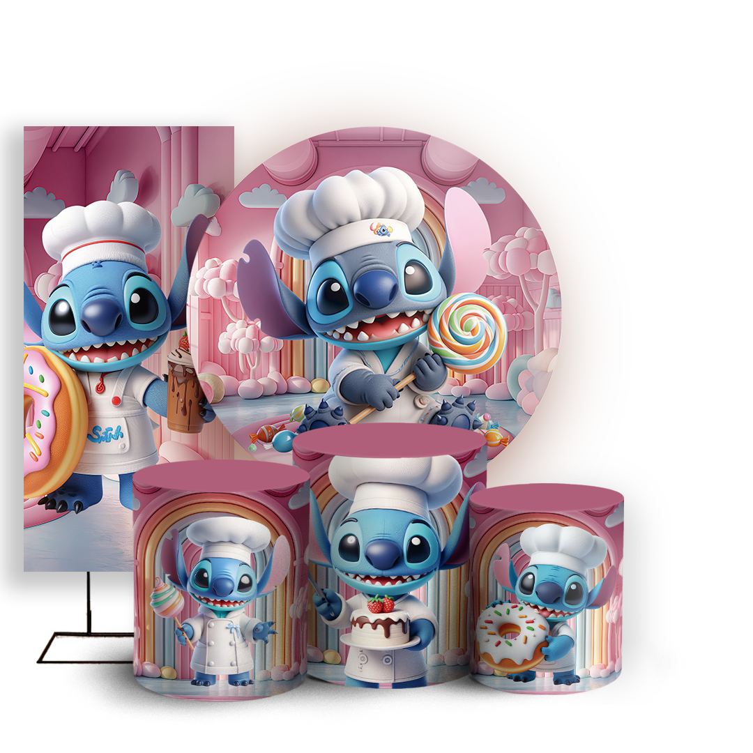 KIT Redondo Trio e Faixa - Stitch Confeitaria - Sublimado 3D