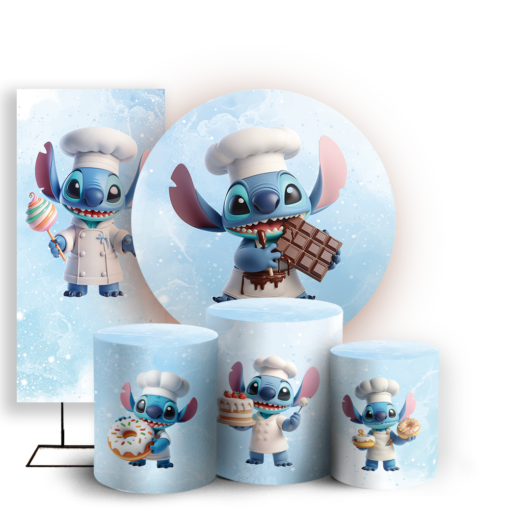 KIT Redondo Trio e Faixa - Stitch Confeitaria - Sublimado 3D