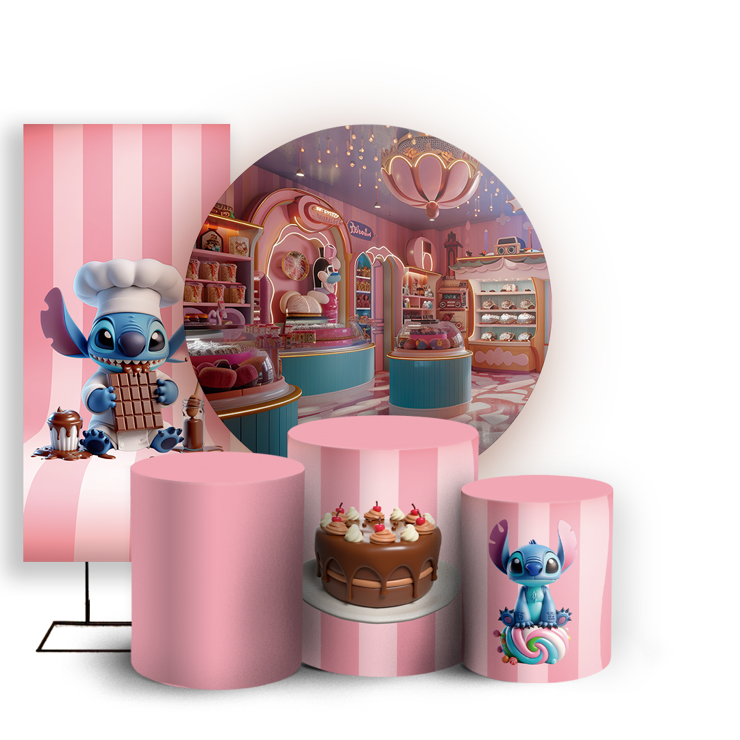 KIT Redondo Trio e Faixa - Stitch Confeiteiro - Sublimado 3D