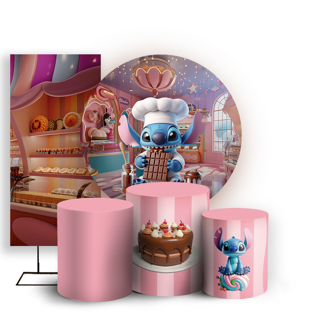 KIT Redondo Trio e Faixa - Stitch Confeiteiro - Sublimado 3D