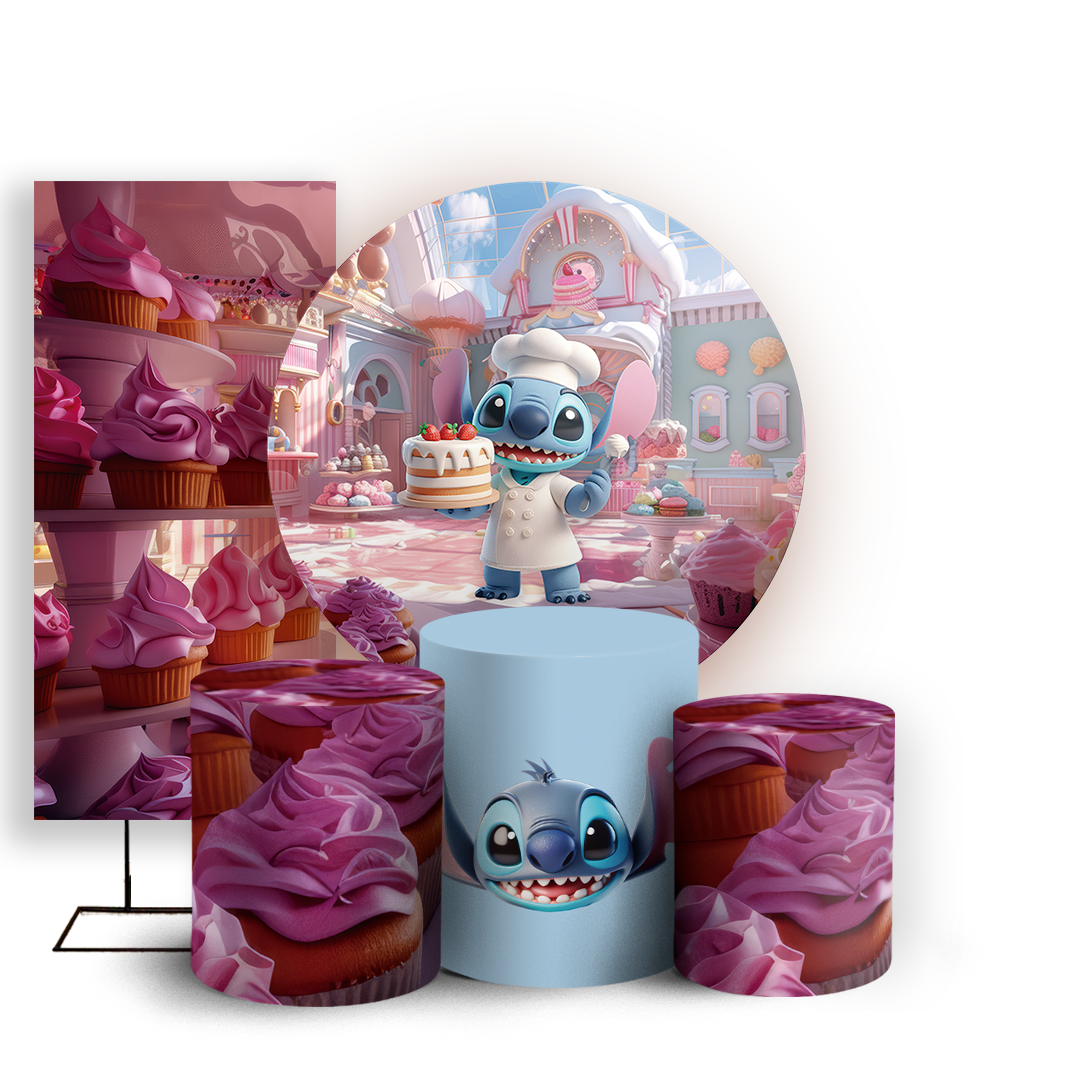 KIT Redondo Trio e Faixa - Stitch Confeiteiro - Sublimado 3D