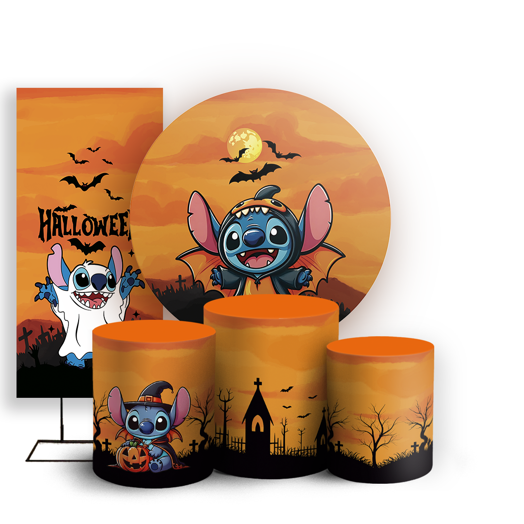 KIT Redondo Trio e Faixa Sublimado 3D - Stitch Dia das Bruxas Halloween