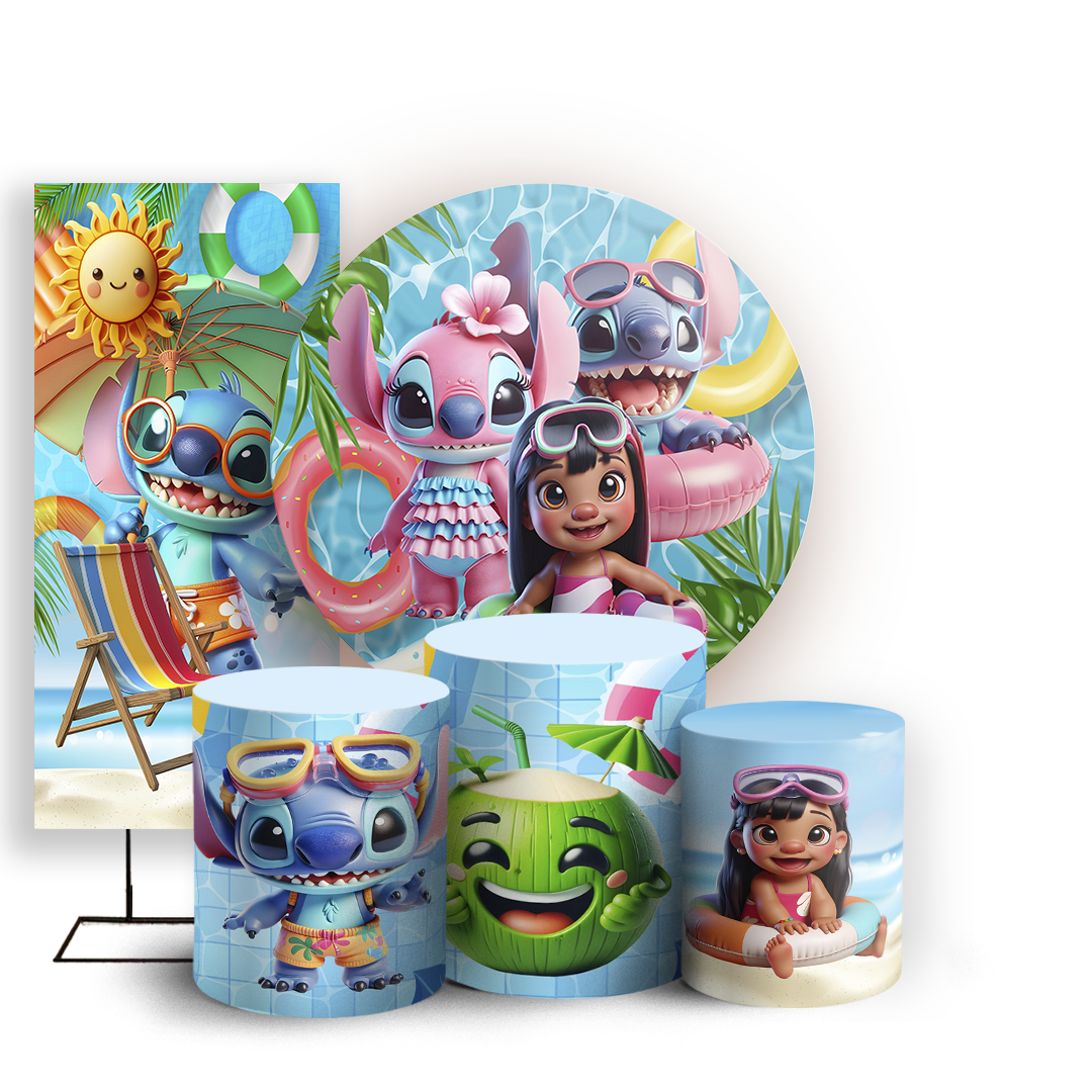 KIT Redondo Trio e Faixa - Stitch Pool Party - Sublimado 3D