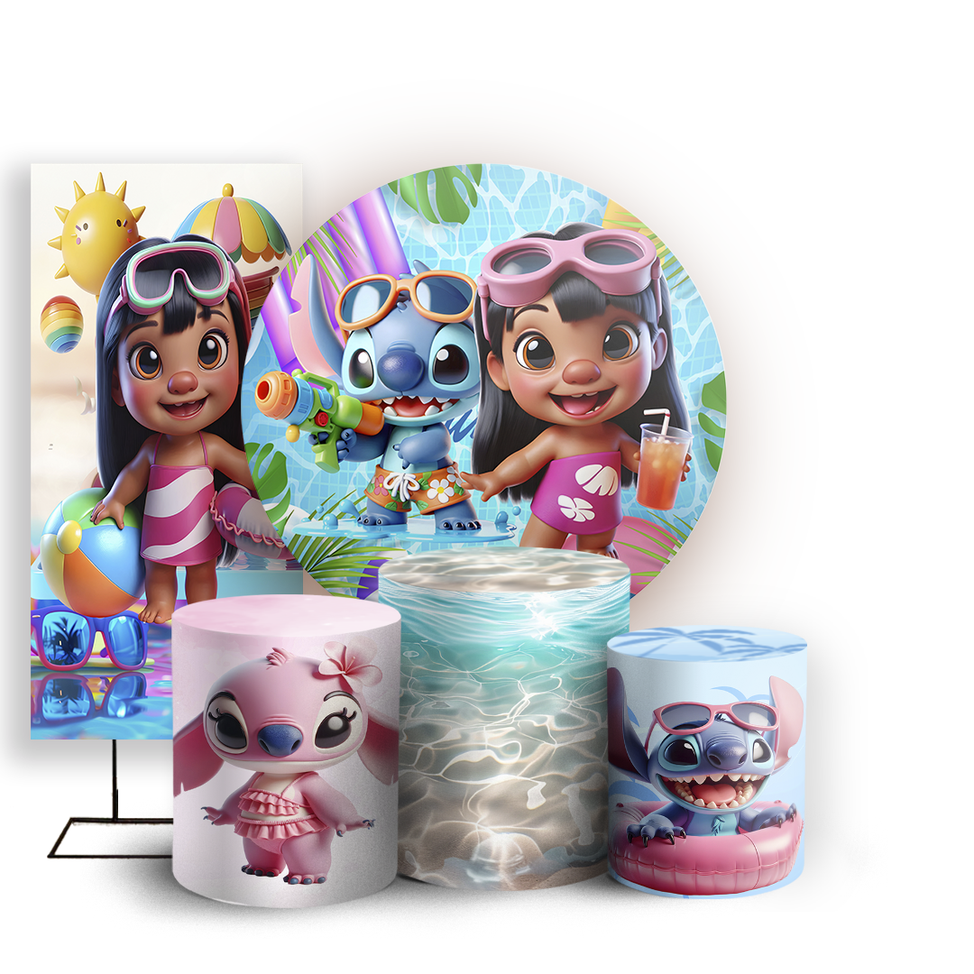 KIT Redondo Trio e Faixa - Stitch Pool Party - Sublimado 3D