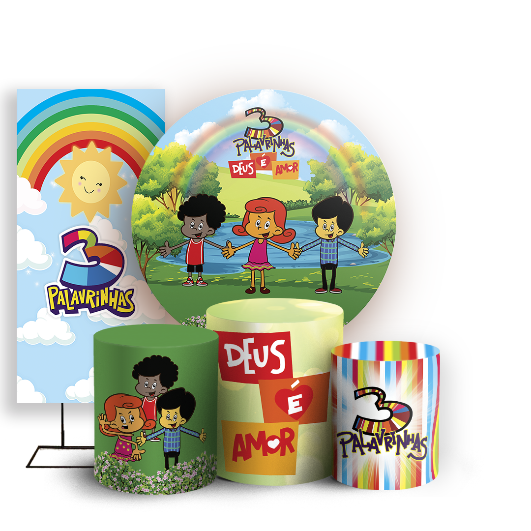KIT Redondo Trio e Faixa Sublimado 3D - 3 Palavrinhas