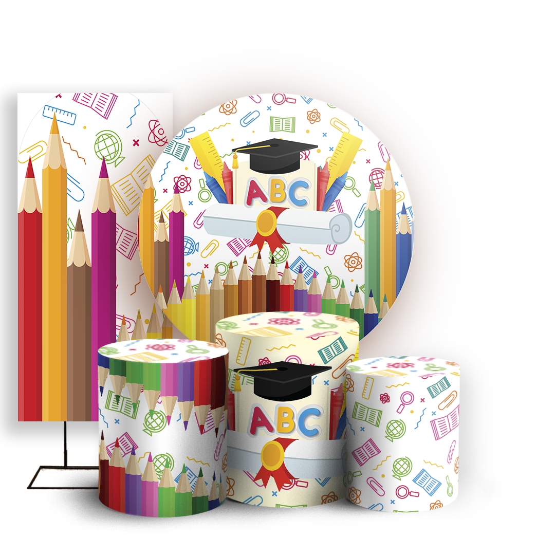 Com o kit Redondo, Trio de capas e Faixa lateral você criar uma decoração criativa para qualquer festa ou evento.