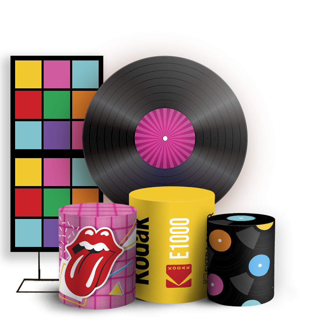 Com o kit Redondo, Trio de capas e Faixa lateral você criar uma decoração criativa para qualquer festa ou evento.