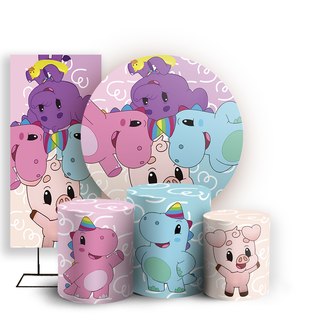 Com o kit Redondo, Trio de capas e Faixa lateral você criar uma decoração criativa para qualquer festa ou evento.