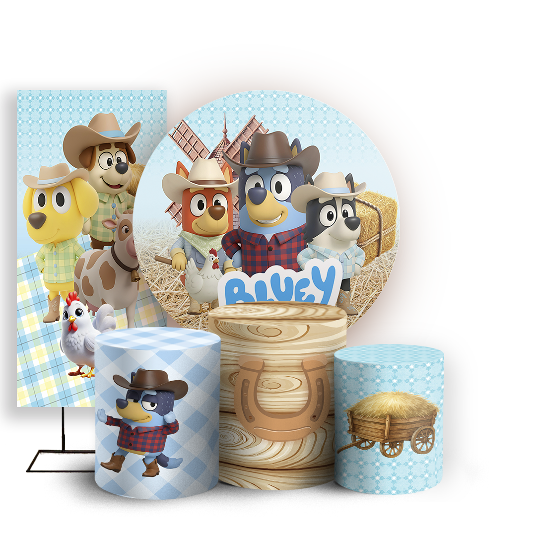 KIT Redondo Trio e Faixa Sublimado 3D - Bluey Fazendinha
