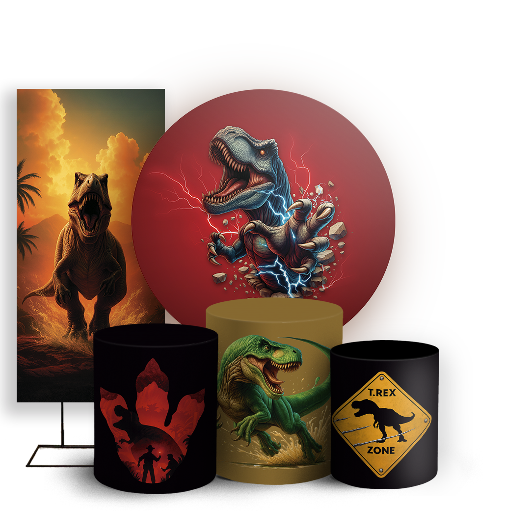 KIT Redondo Trio e Faixa Sublimado 3D - Dinossauro