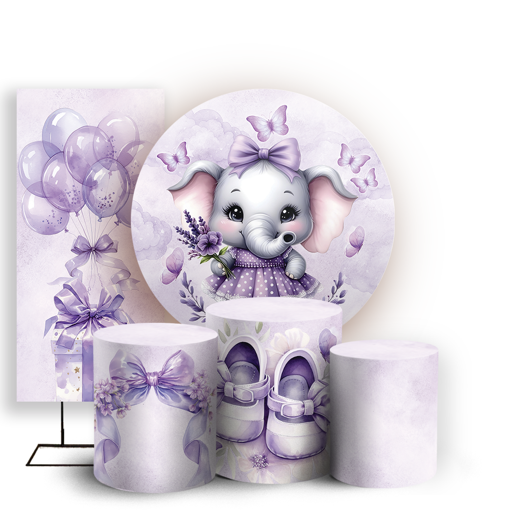 KIT Redondo Trio e Faixa Sublimado 3D - Elefantinha Lilás