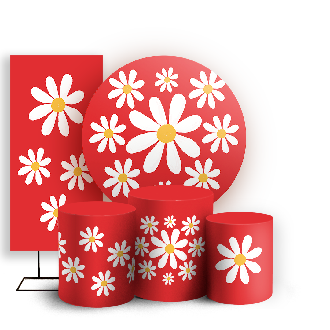 KIT Redondo Trio e Faixa Sublimado 3D - Flor Margarida