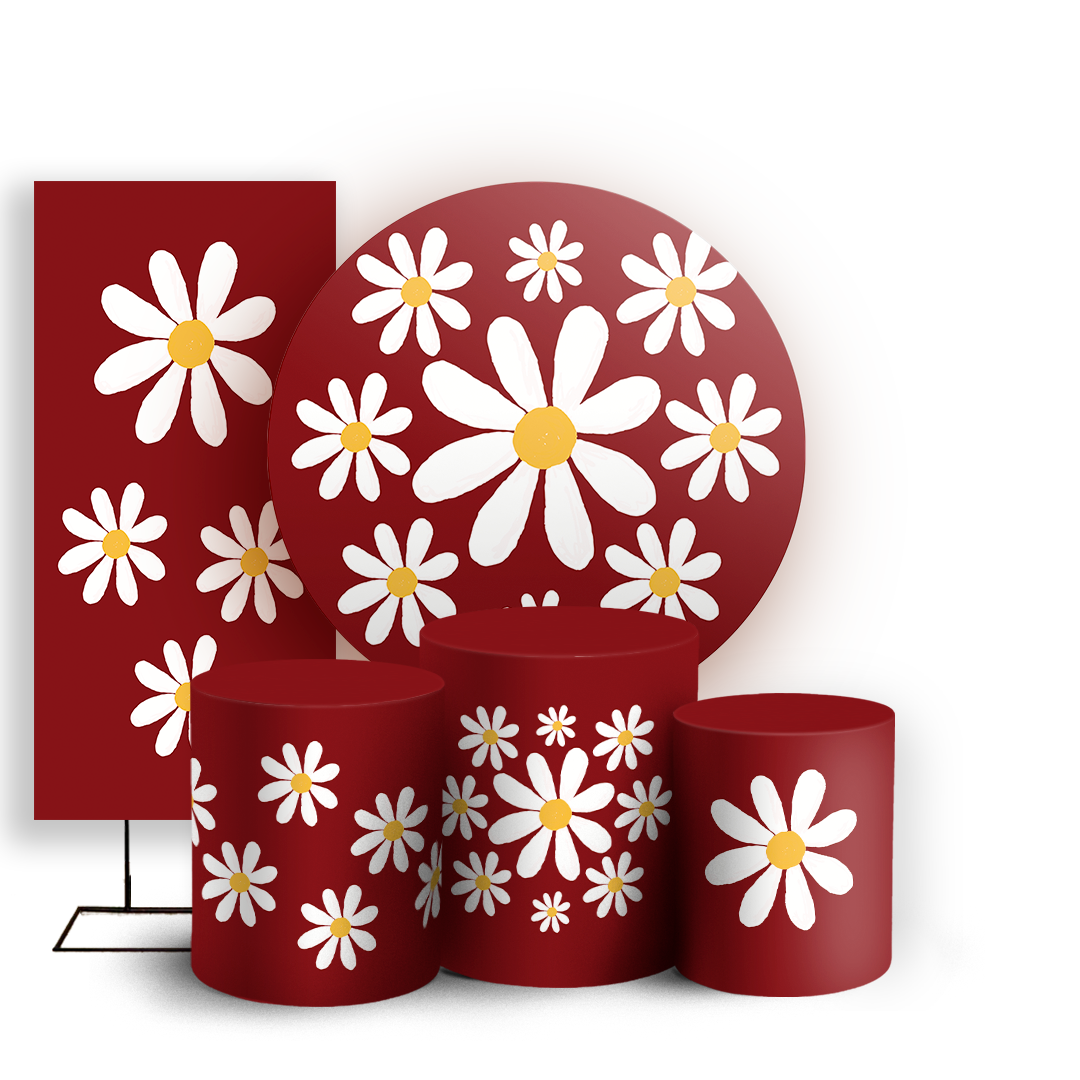 KIT Redondo Trio e Faixa Sublimado 3D - Flor Margarida