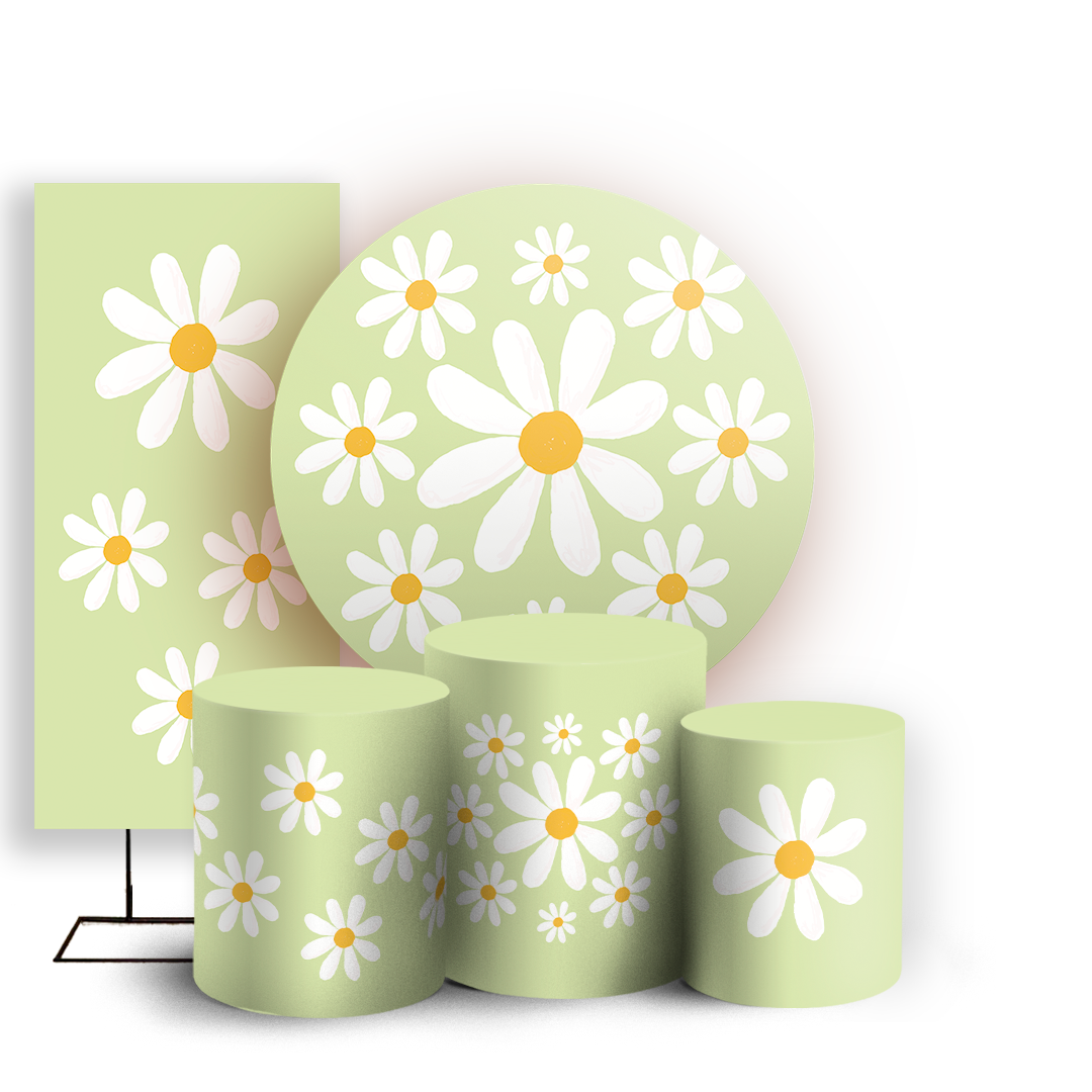 KIT Redondo Trio e Faixa Sublimado 3D - Flor Margarida