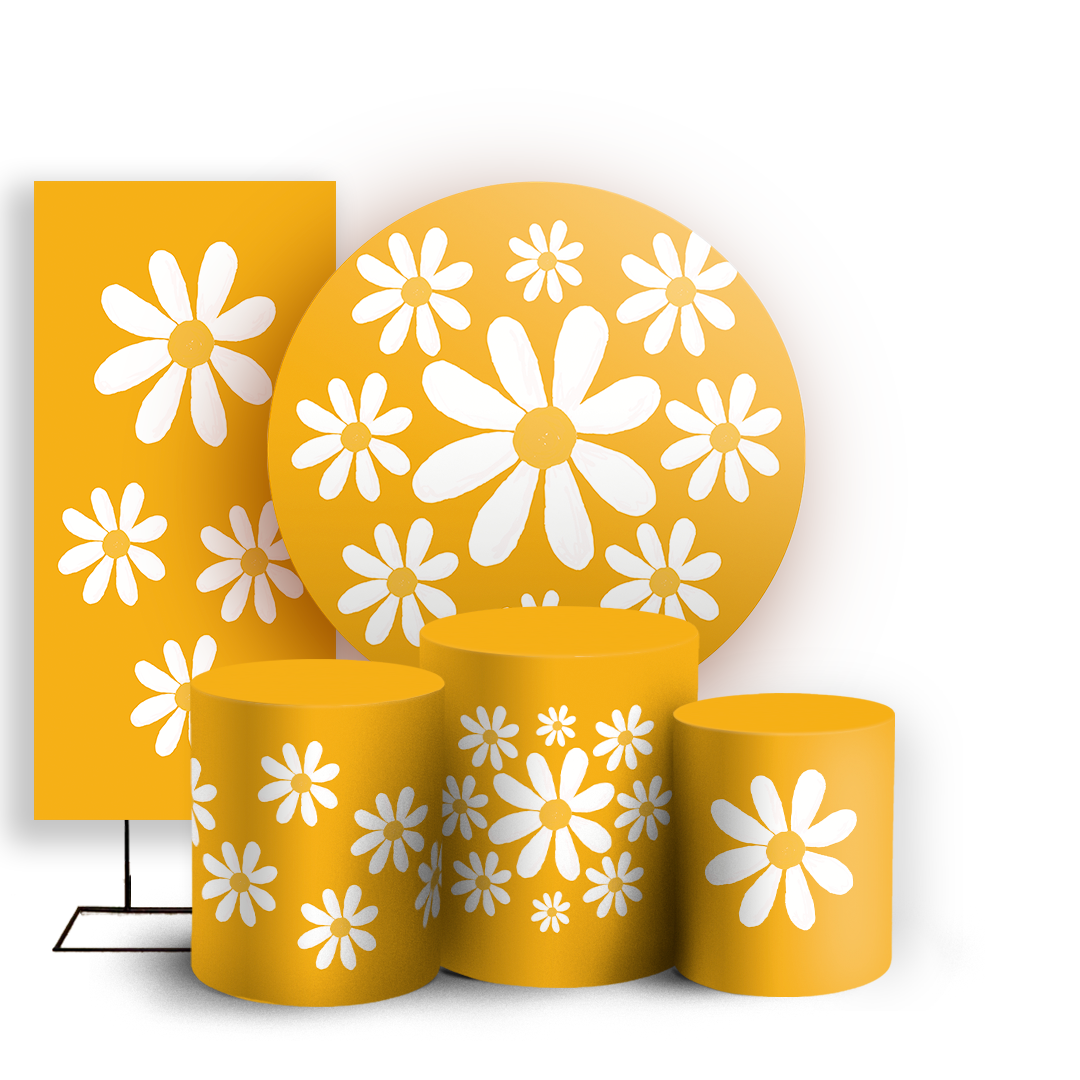 KIT Redondo Trio e Faixa Sublimado 3D - Flor Margarida