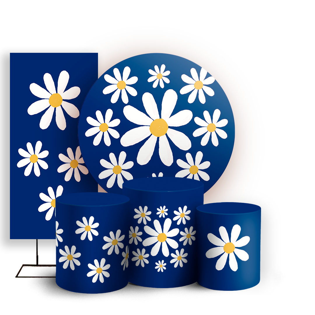 KIT Redondo Trio e Faixa Sublimado 3D - Flor Margarida