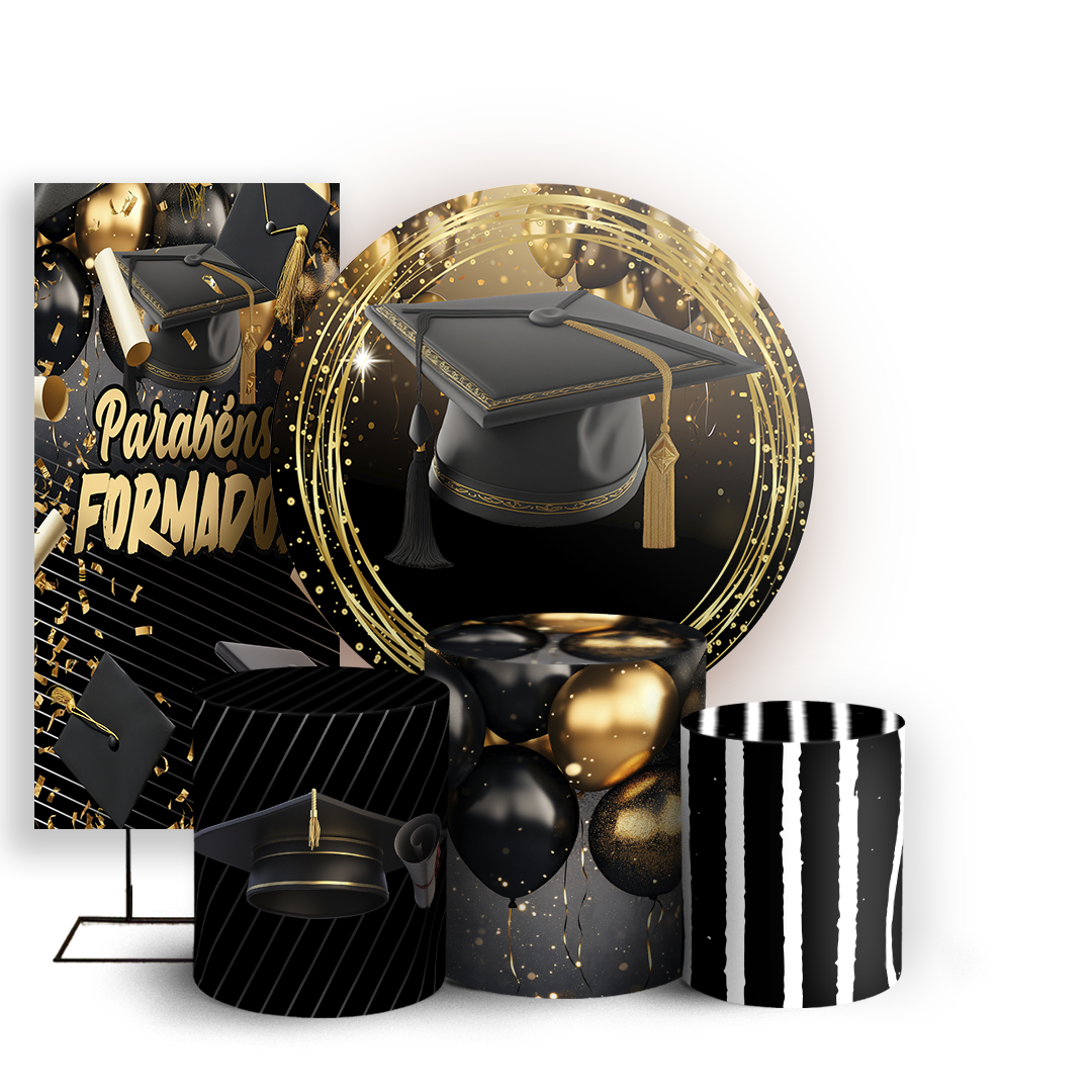 Com o kit Redondo, Trio de capas e Faixa lateral você criar uma decoração criativa para qualquer festa ou evento.