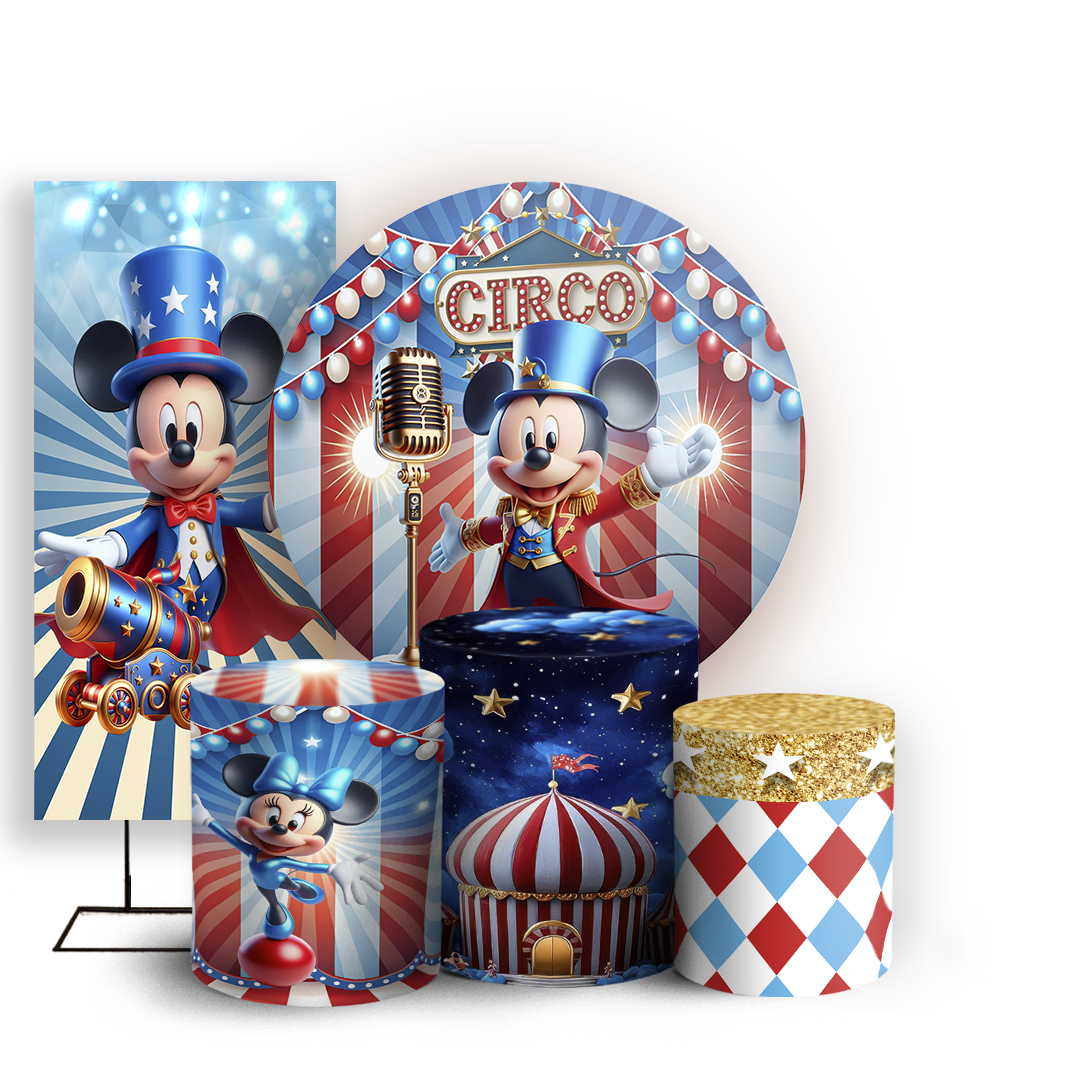 KIT Redondo Trio e Faixa Sublimado 3D - Mickey E Minnie Circo