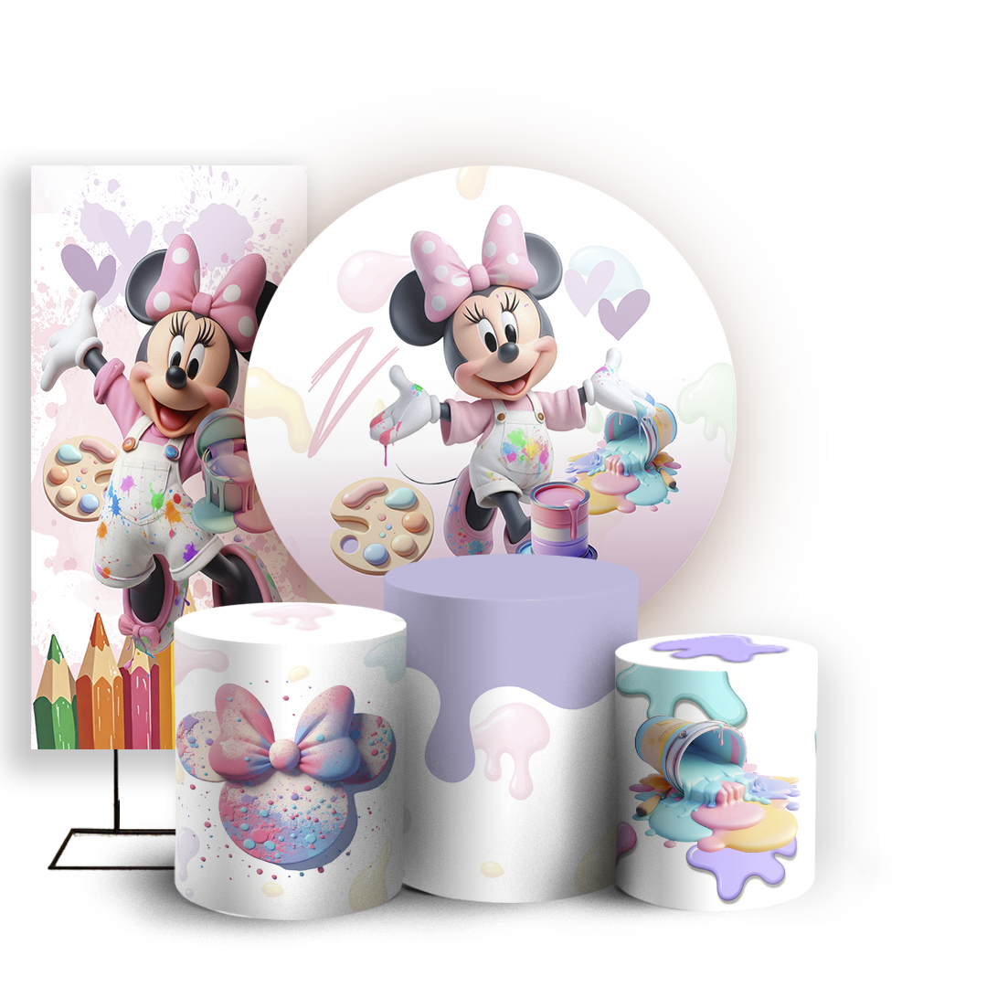KIT Redondo Trio e Faixa Sublimado 3D - Minnie