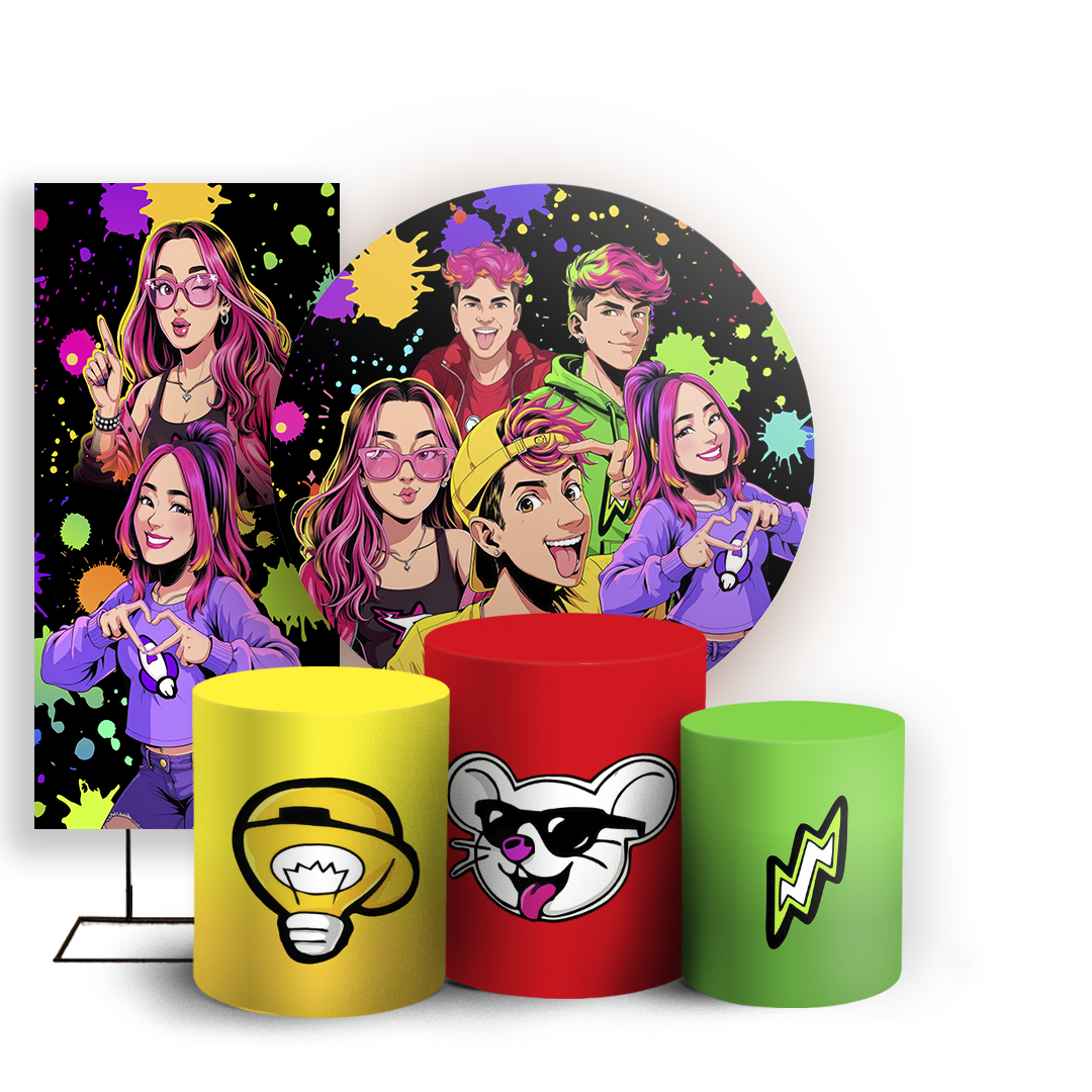 Com o kit Redondo, Trio de capas e Faixa lateral você criar uma decoração criativa para qualquer festa ou evento.