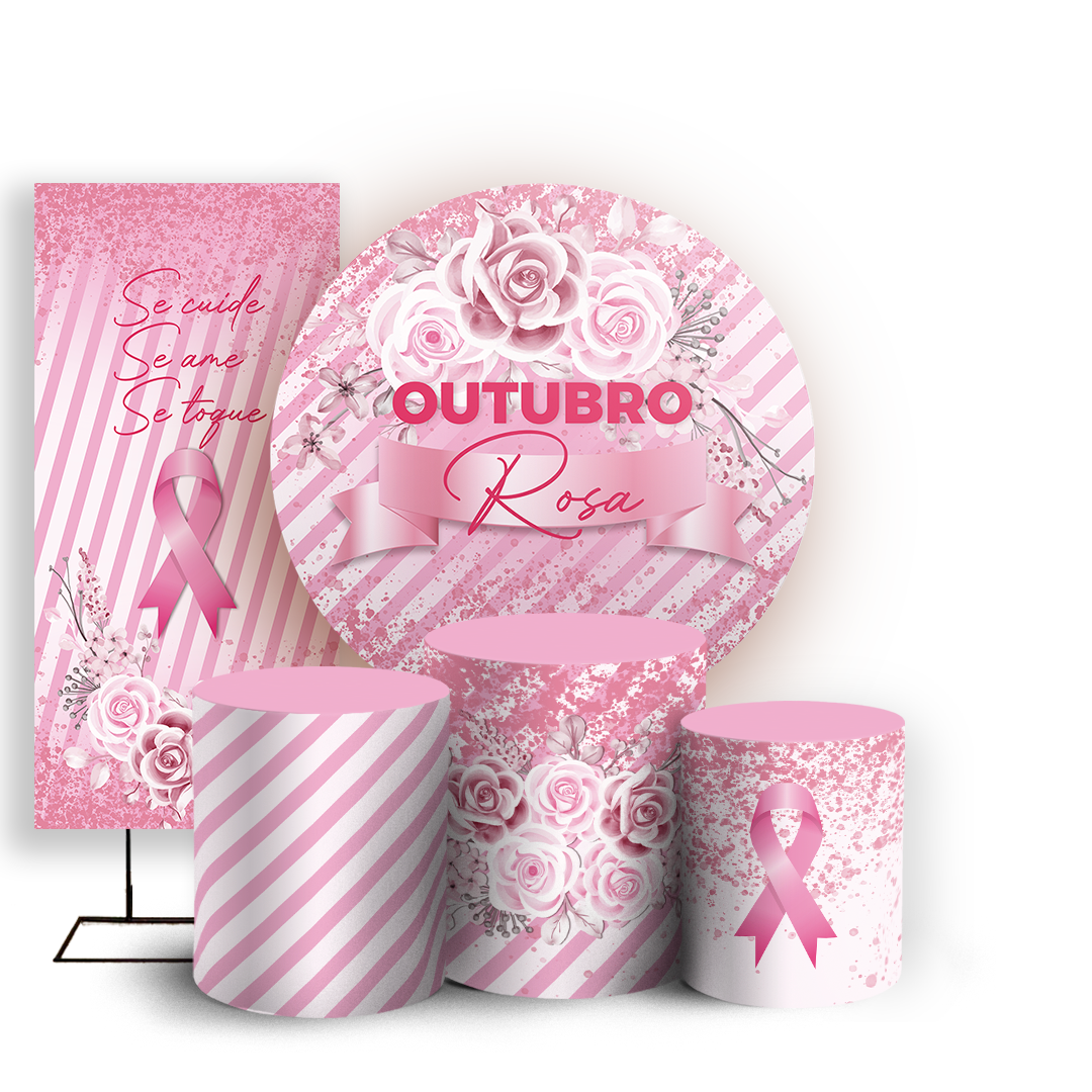 KIT Redondo Trio e Faixa Sublimado 3D - Outubro Rosa